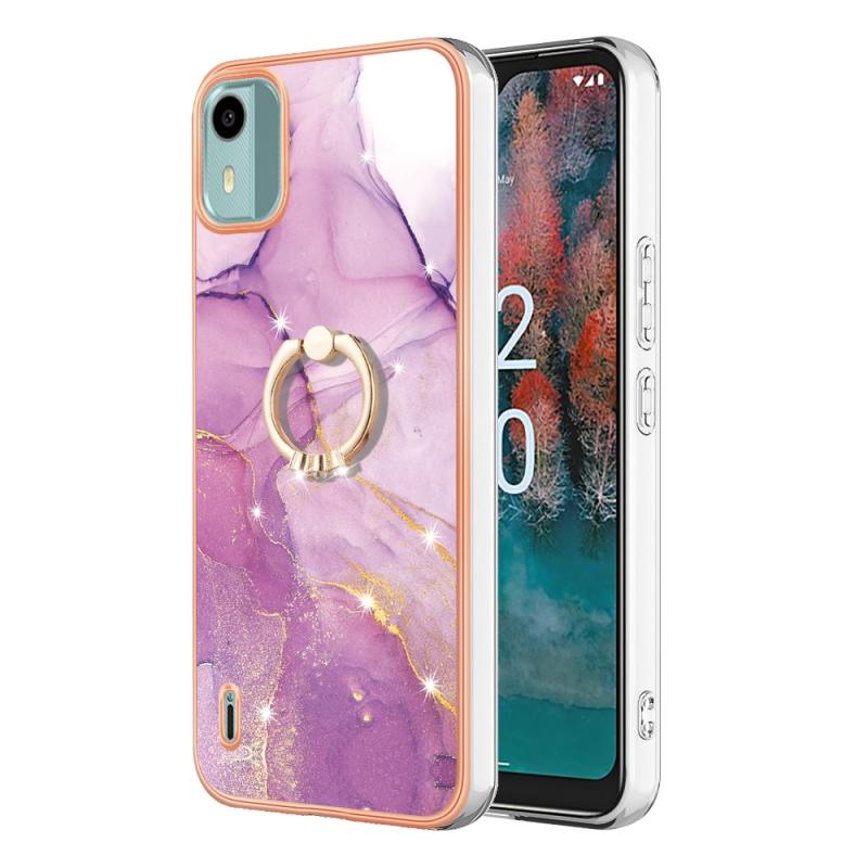 For Nokia C12 Electroplating Marble IMD TPU Phone Case with Ring Holder(Purple 001)