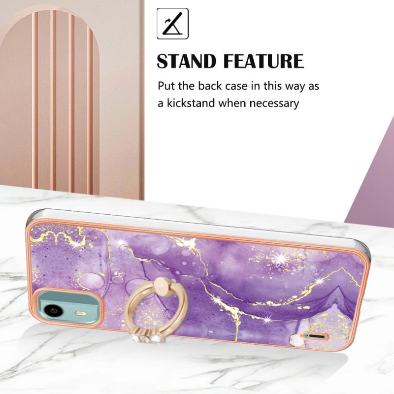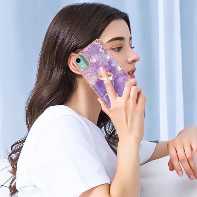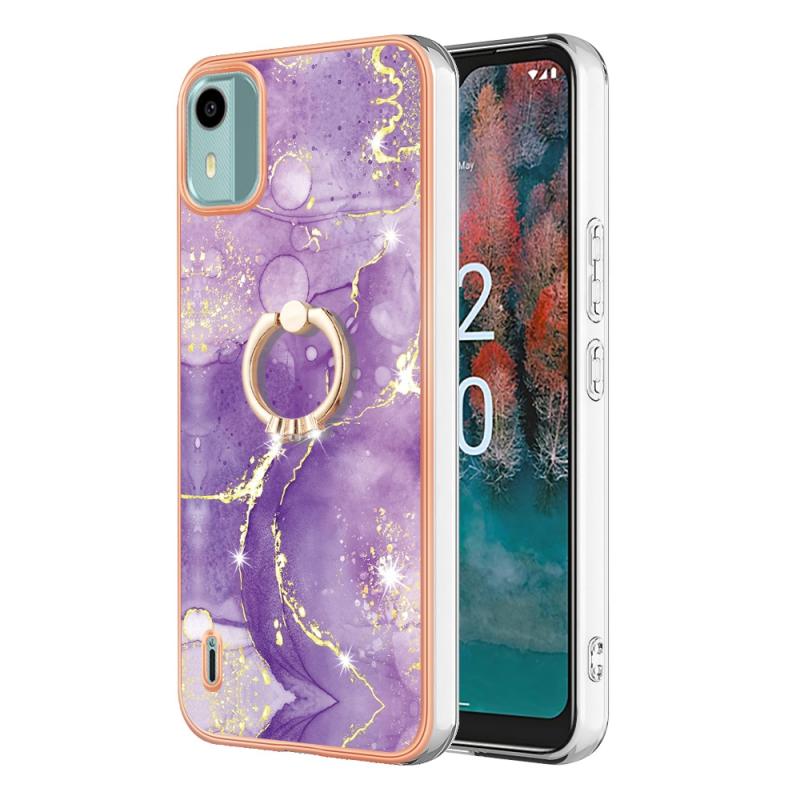 For Nokia C12 Electroplating Marble IMD TPU Phone Case with Ring Holder(Purple 002)