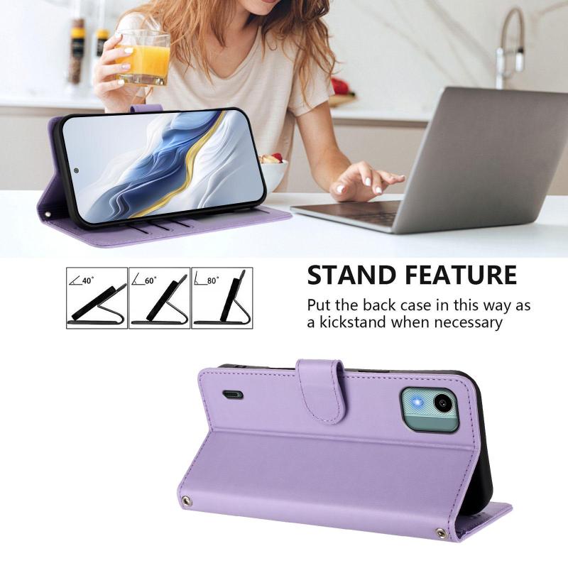 For Nokia C12 Embossed Heart Cat Leather Phone Case with Hand Strap(Light Purple)