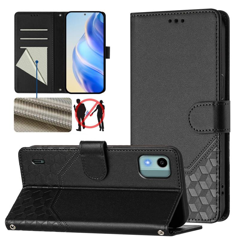 For Nokia C12 Honeycomb Embossing RFID Leather Phone Case(Black)