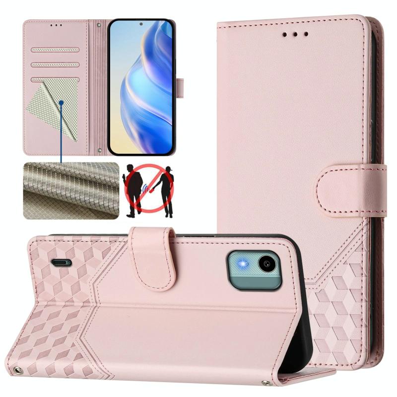 For Nokia C12 Honeycomb Embossing RFID Leather Phone Case(Pink)