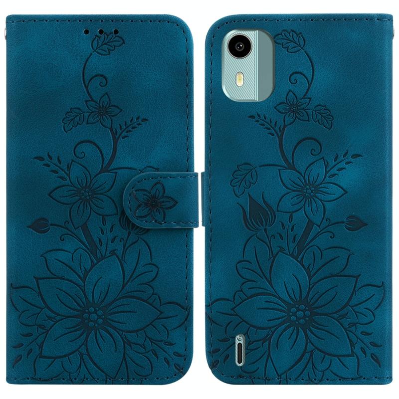 For Nokia C12 Lily Embossed Leather Phone Case(Dark Blue)