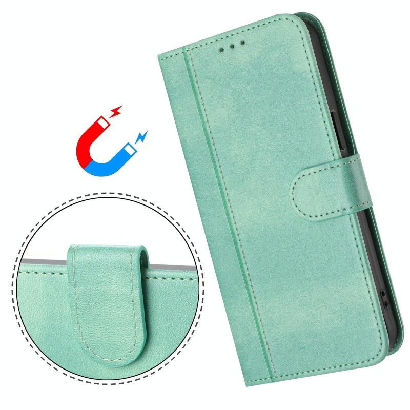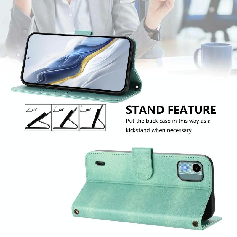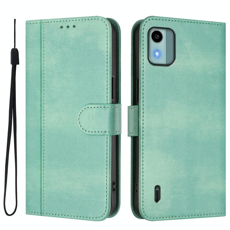 For Nokia C12 Line Splicing Buckle Retro Leather Phone Case(Mint Green)