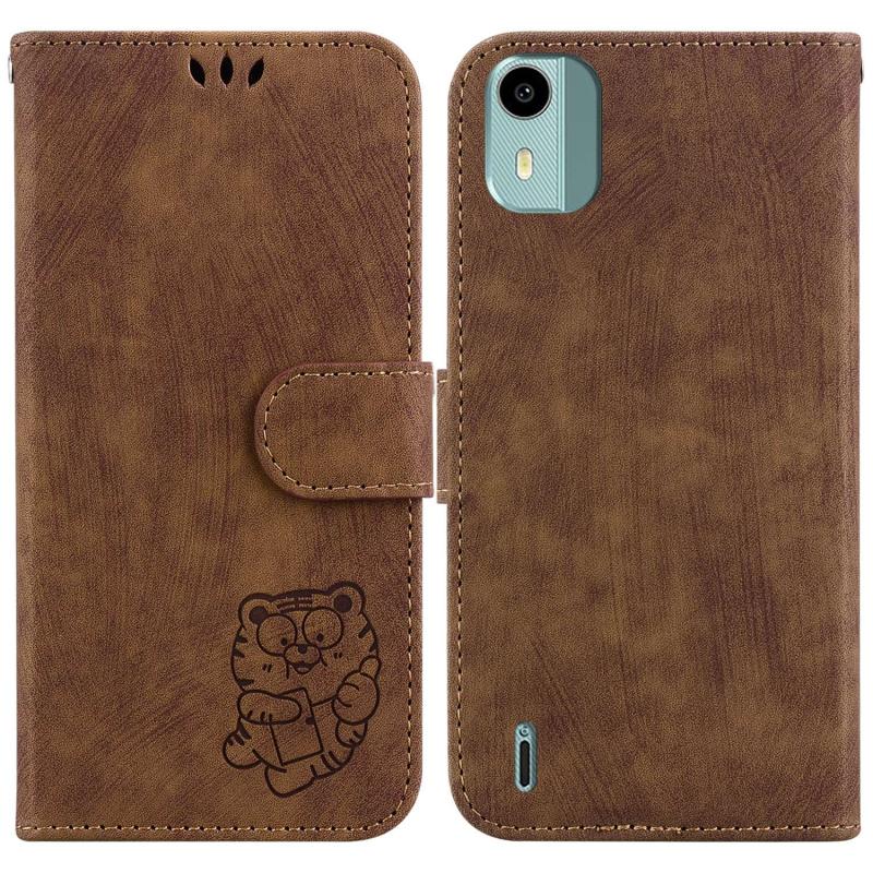 For Nokia C12 Little Tiger Embossed Leather Phone Case(Brown)