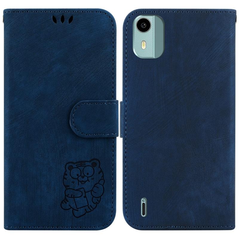 For Nokia C12 Little Tiger Embossed Leather Phone Case(Dark Blue)