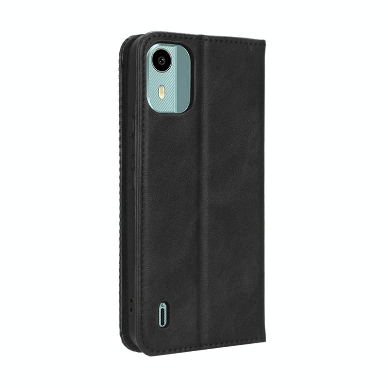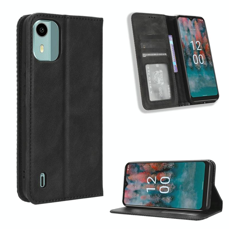 For Nokia C12 Magnetic Buckle Retro Texture Leather Phone Case(Black)