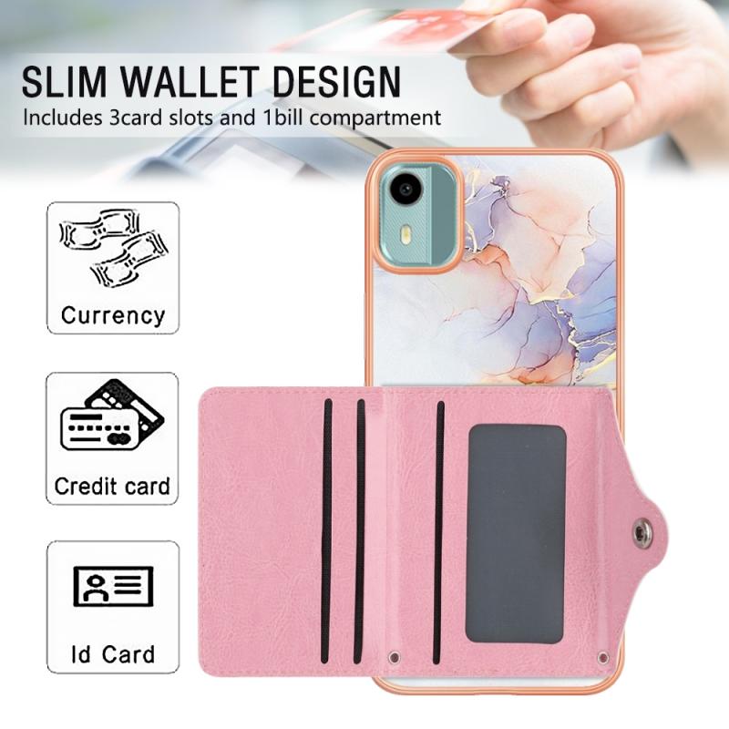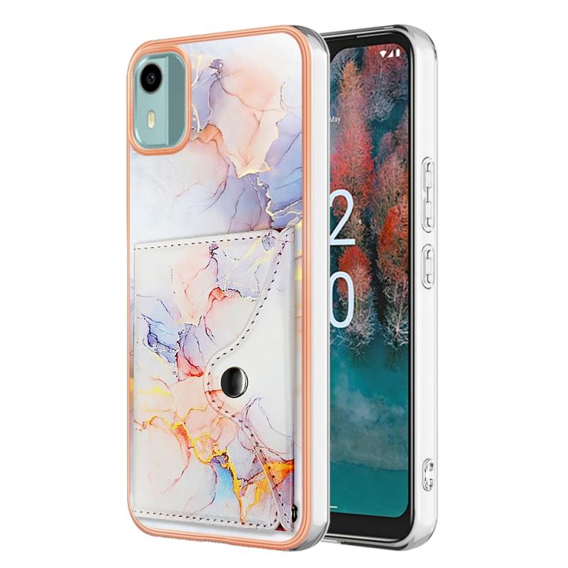 For Nokia C12 Marble Pattern IMD Card Slot Phone Case(Galaxy Marble White)