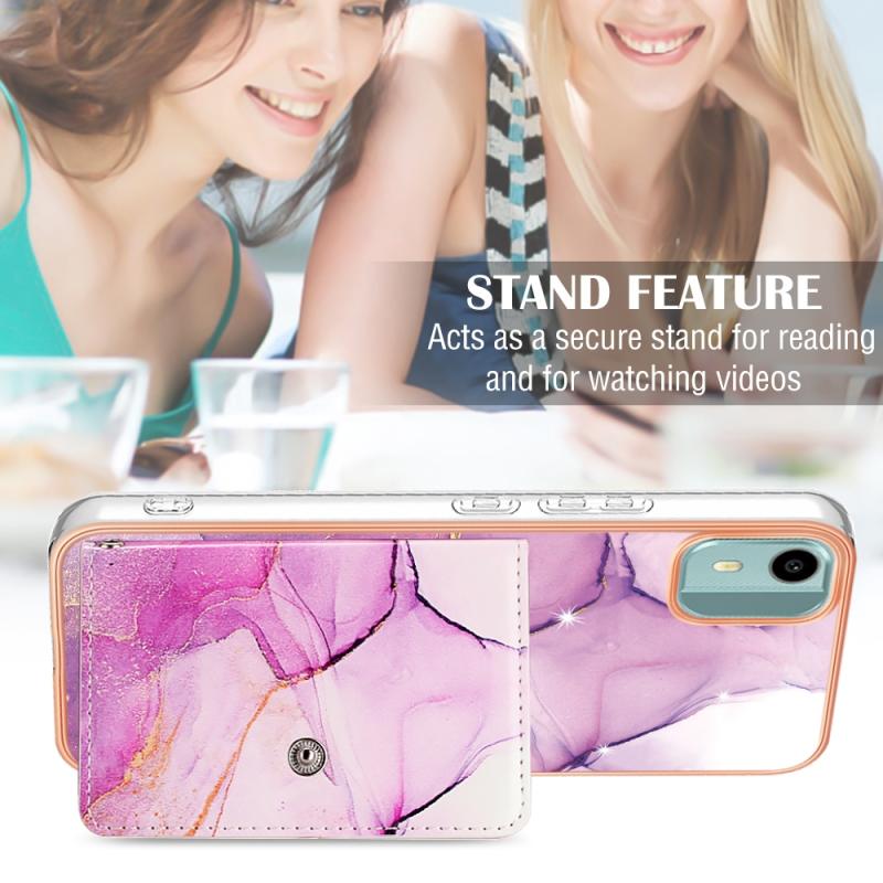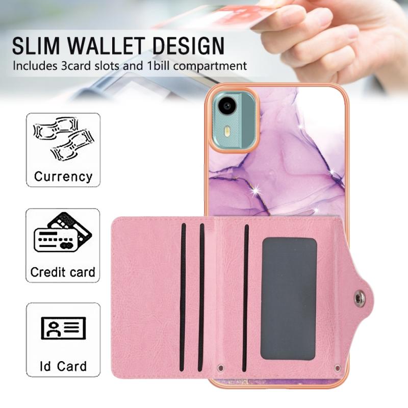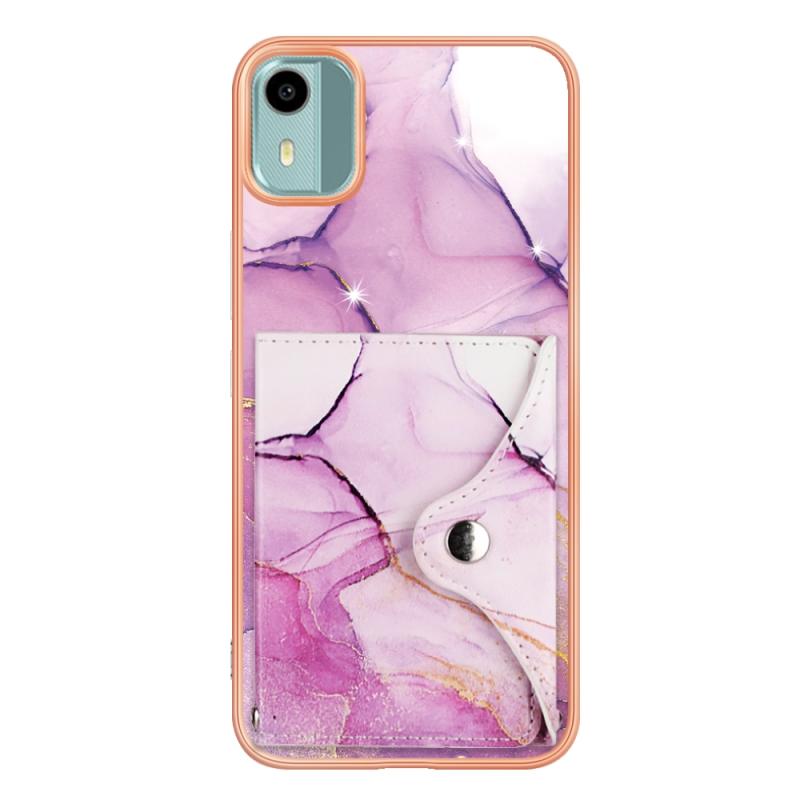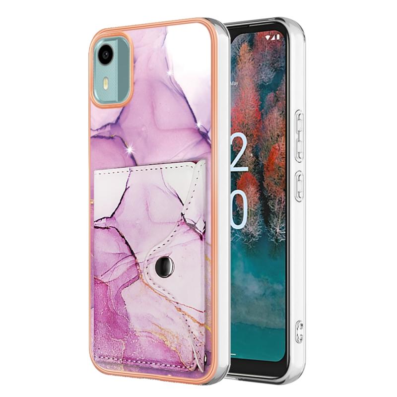 For Nokia C12 Marble Pattern IMD Card Slot Phone Case(Pink Purple Gold)