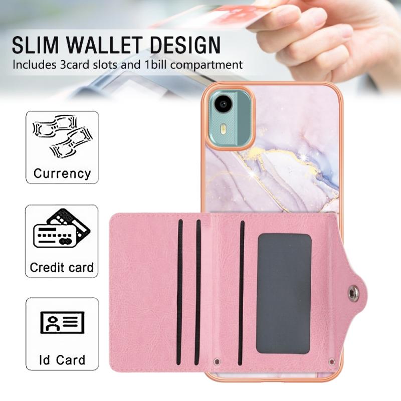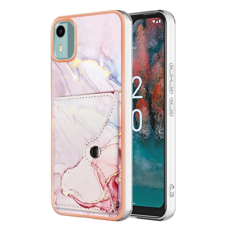 For Nokia C12 Marble Pattern IMD Card Slot Phone Case(Rose Gold)