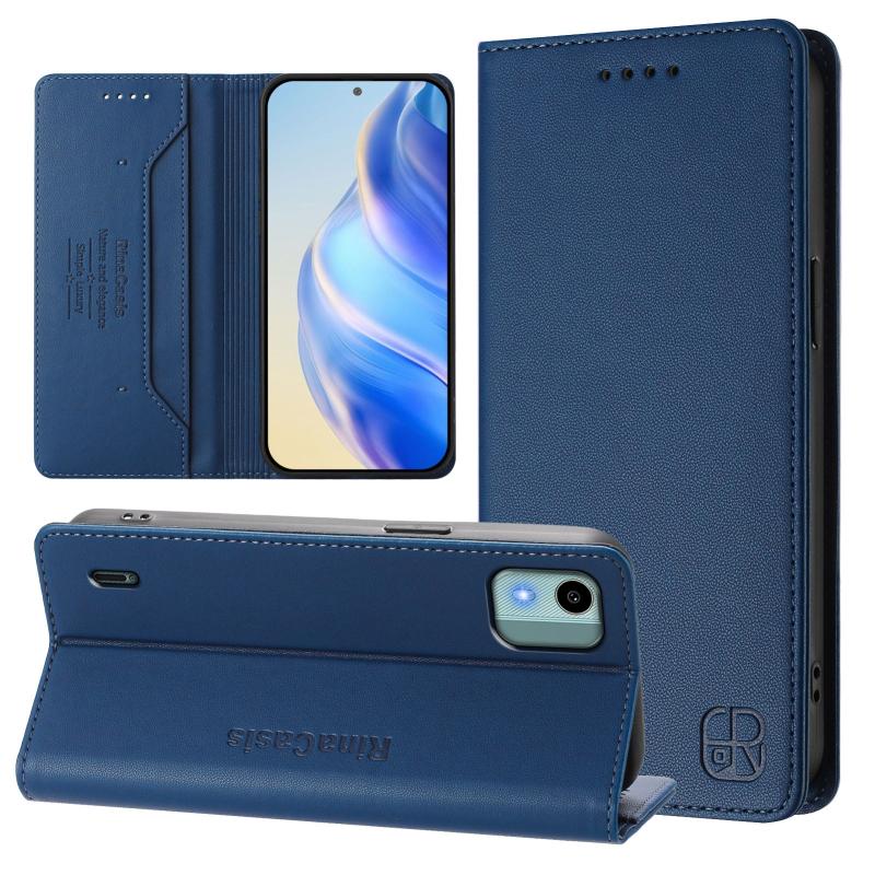 For Nokia C12 RC01 Dual-Folded Magnetic Suction RFID Leather Phone Case(Dark Blue)