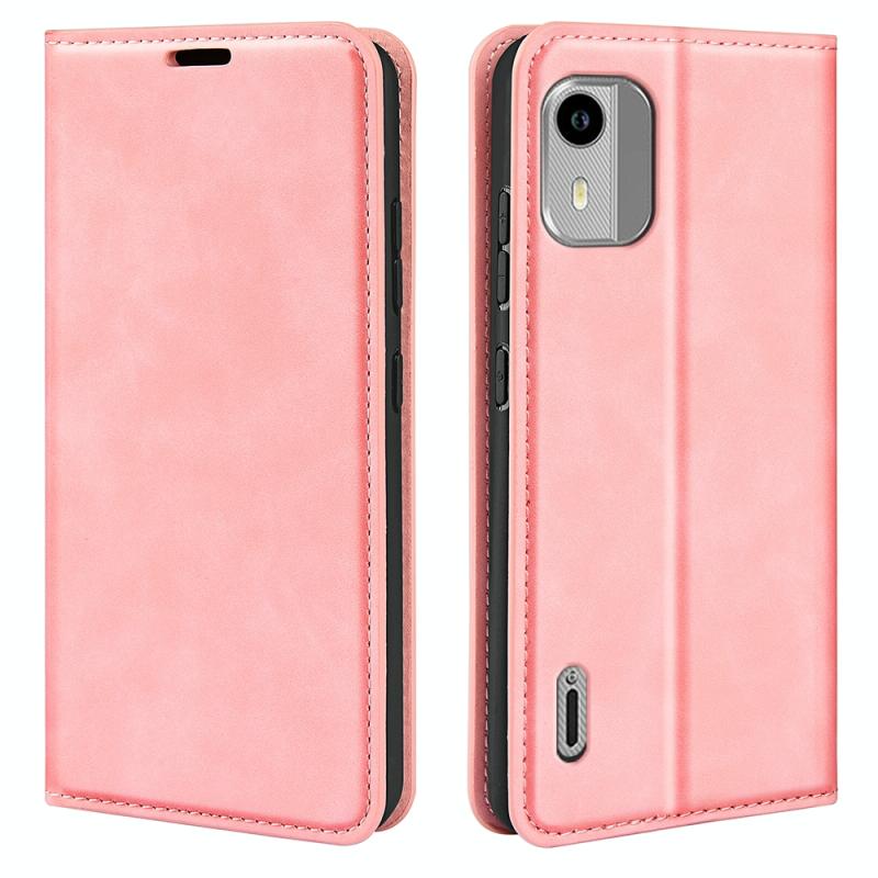 For Nokia C12 Retro-skin Magnetic Suction Leather Phone Case(Pink)