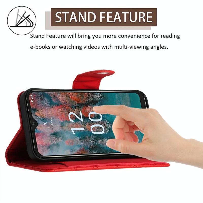For Nokia C12 Rhombic Texture Flip Leather Phone Case with Lanyard(Red)