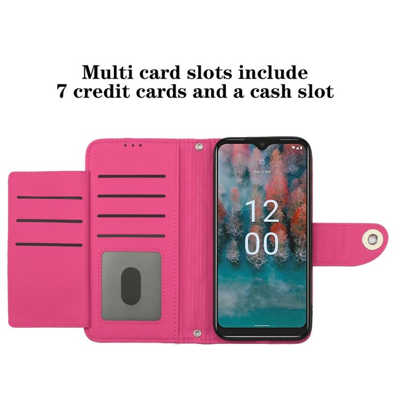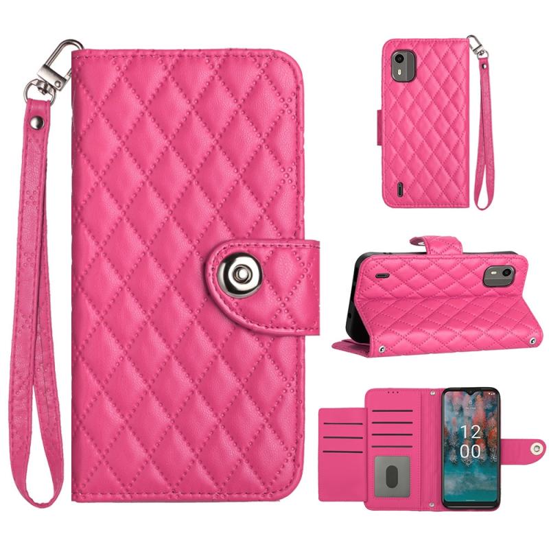 For Nokia C12 Rhombic Texture Flip Leather Phone Case with Lanyard(Rose Red)