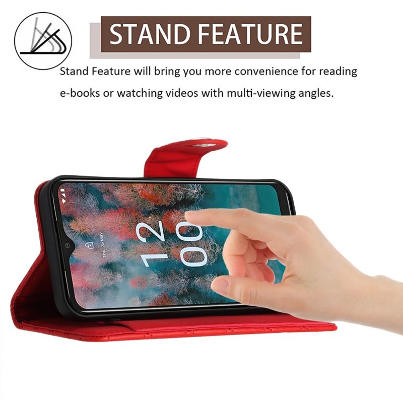 For Nokia C12 Rhombic Texture Flip Leather Phone Case with Long Lanyard(Red)