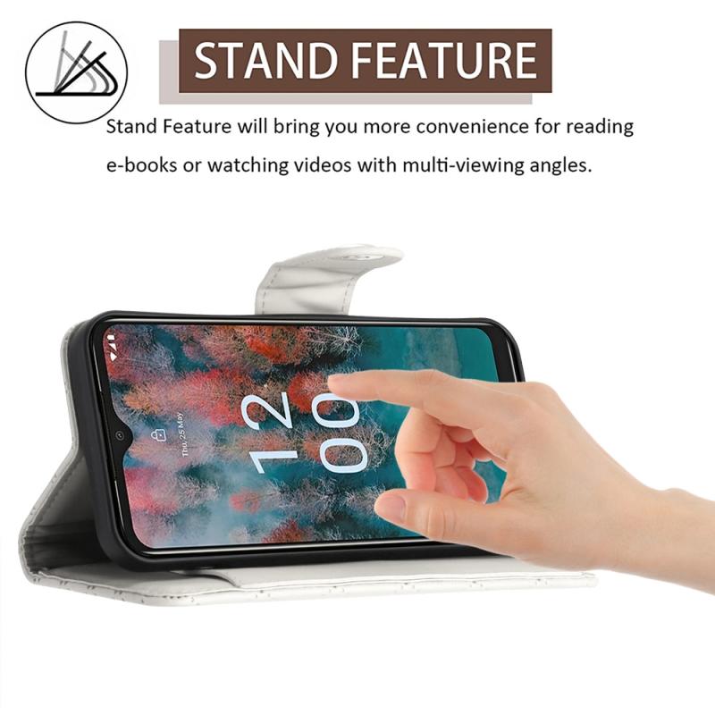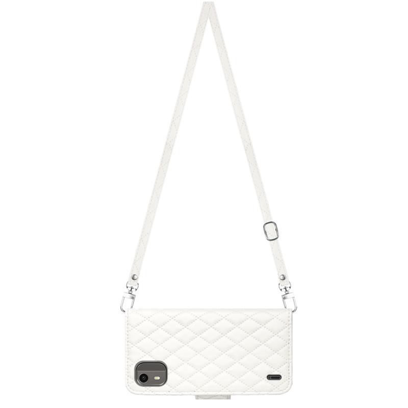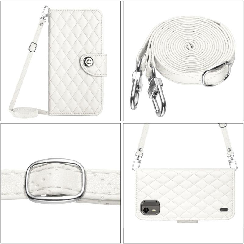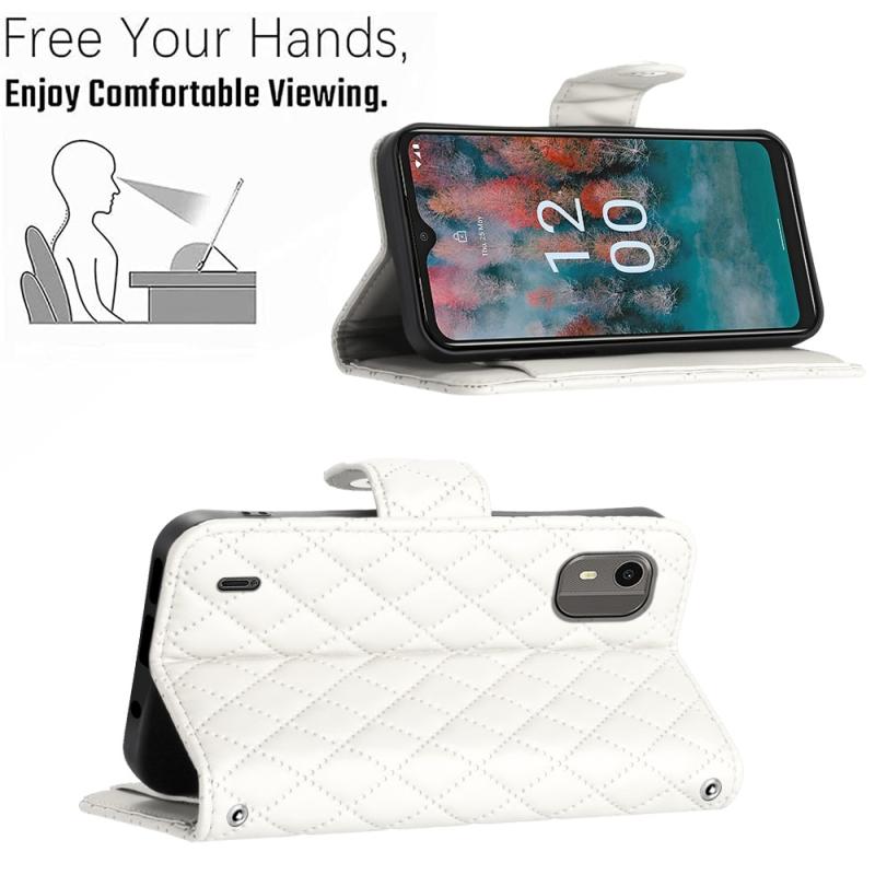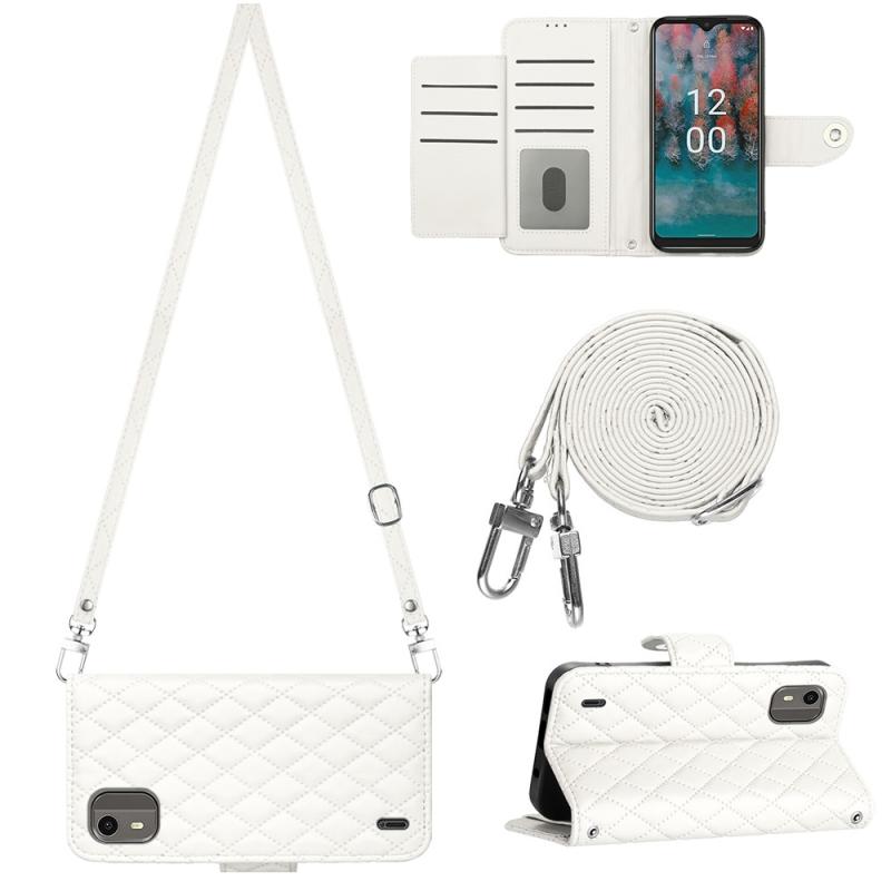 For Nokia C12 Rhombic Texture Flip Leather Phone Case with Long Lanyard(White)