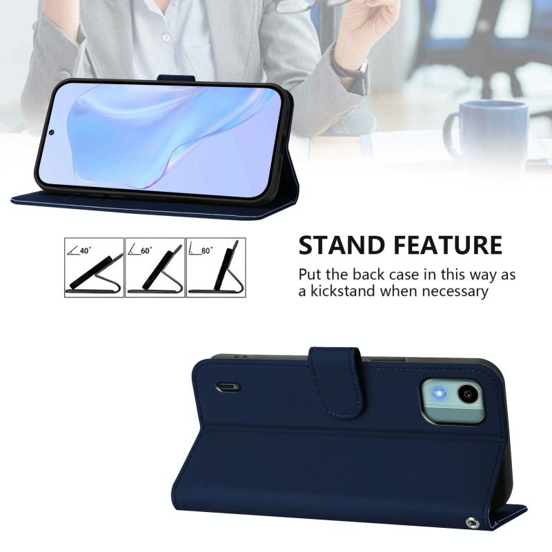 For Nokia C12 Skin Feel Solid Color Leather Phone Case with Lanyard(Navy Blue)