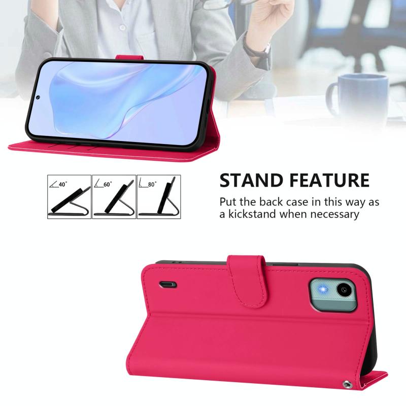 For Nokia C12 Skin Feel Solid Color Leather Phone Case with Lanyard(Rose Red)