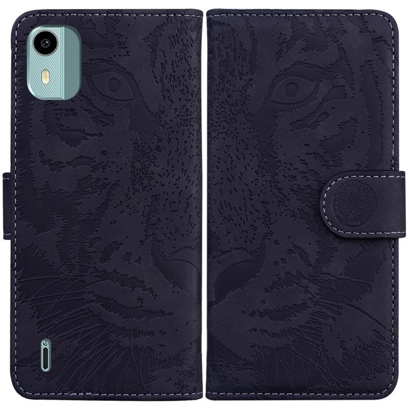 For Nokia C12 Tiger Embossing Pattern Flip Leather Phone Case(Black)