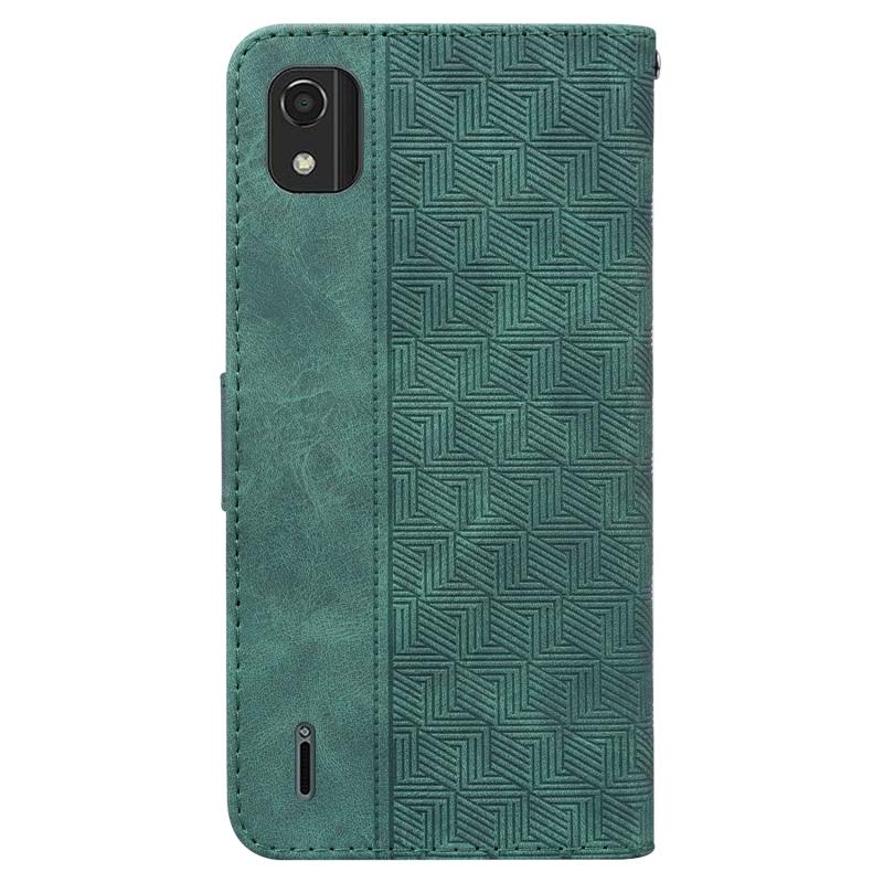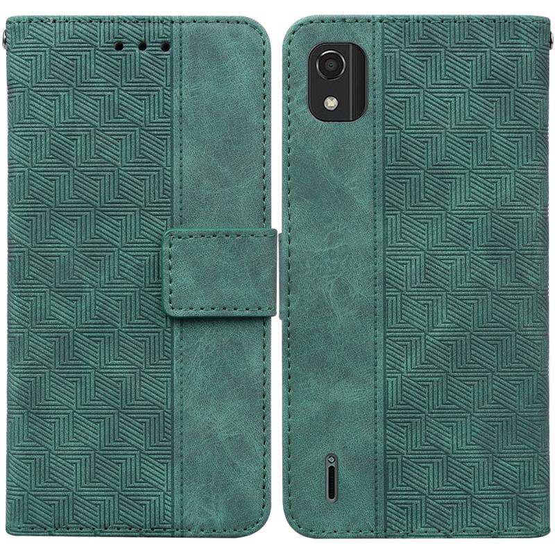 For Nokia C2 2nd Edition Geometric Embossed Leather Phone Case(Green)
