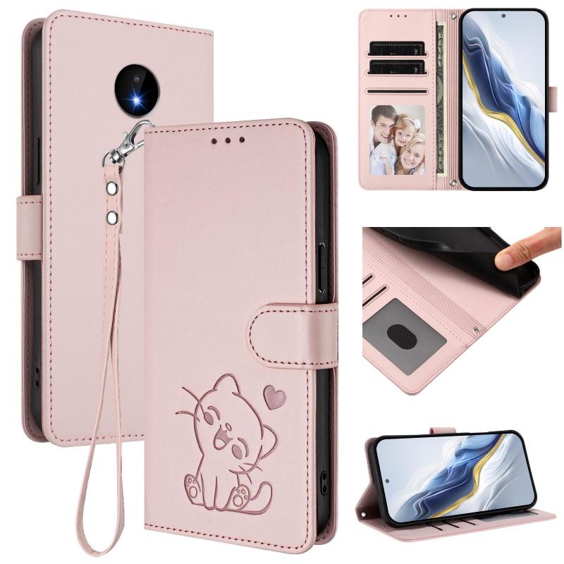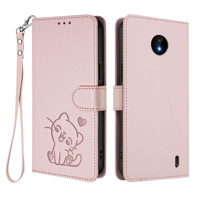 For Nokia C20 / C10 Embossed Heart Cat Leather Phone Case with Hand Strap(Pink)