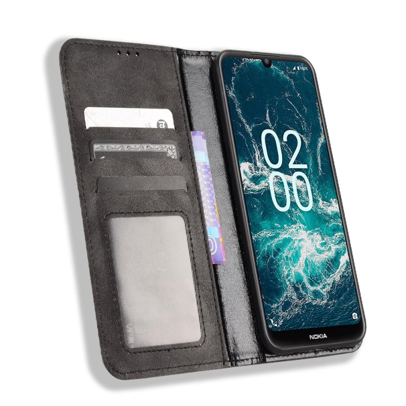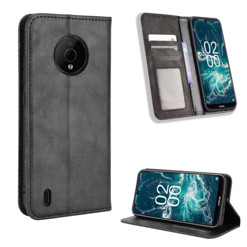 For Nokia C200 Magnetic Buckle Retro Texture Leather Phone Case(Black)