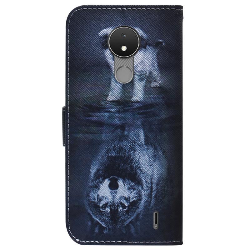 For Nokia C21 Coloured Drawing Leather Phone Case(Wolf and Dog)