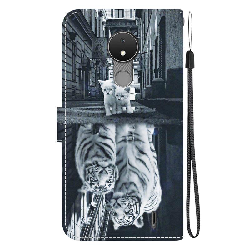 For Nokia C21 Crystal Texture Colored Drawing Leather Phone Case(Cat Tiger Reflection)