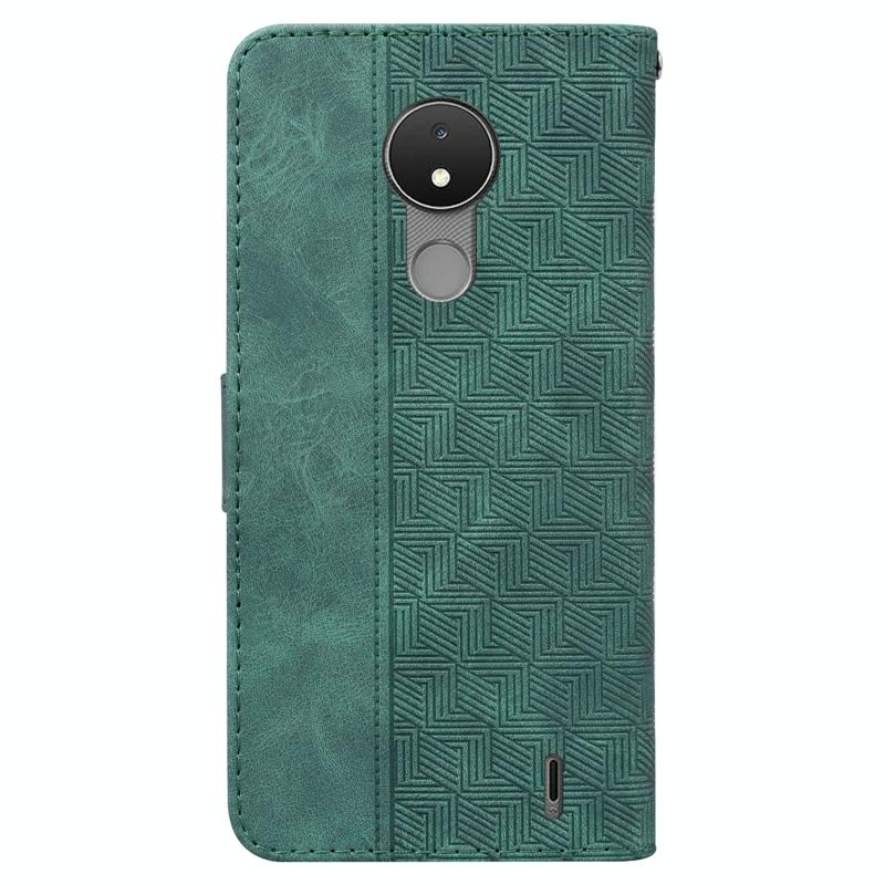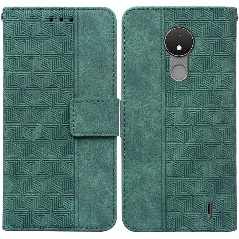 For Nokia C21 Geometric Embossed Leather Phone Case(Green)