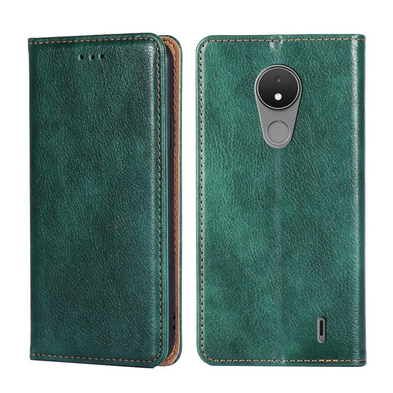 For Nokia C21 Gloss Oil Solid Color Magnetic Leather Phone Case(Green)