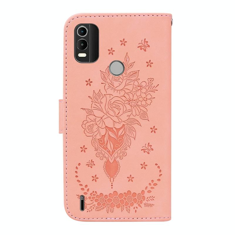 For Nokia C21 Plus Butterfly Rose Embossed Leather Phone Case(Pink)