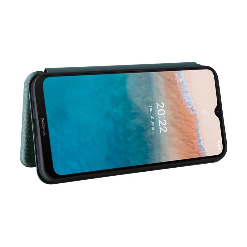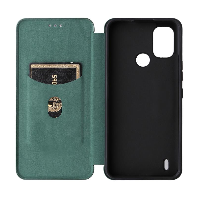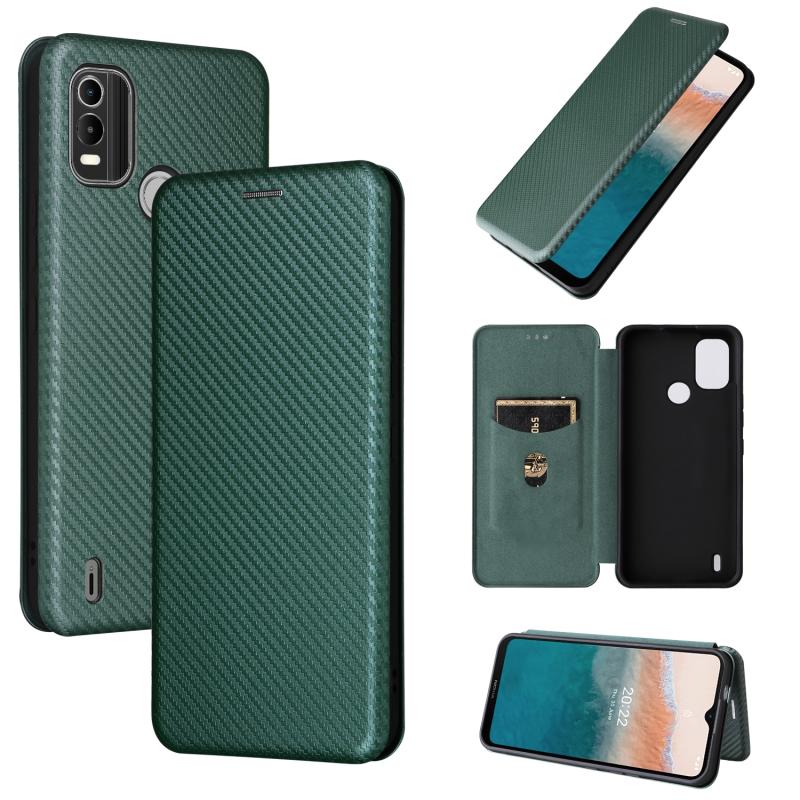 For Nokia C21 Plus Carbon Fiber Texture Flip Leather Phone Case(Green)