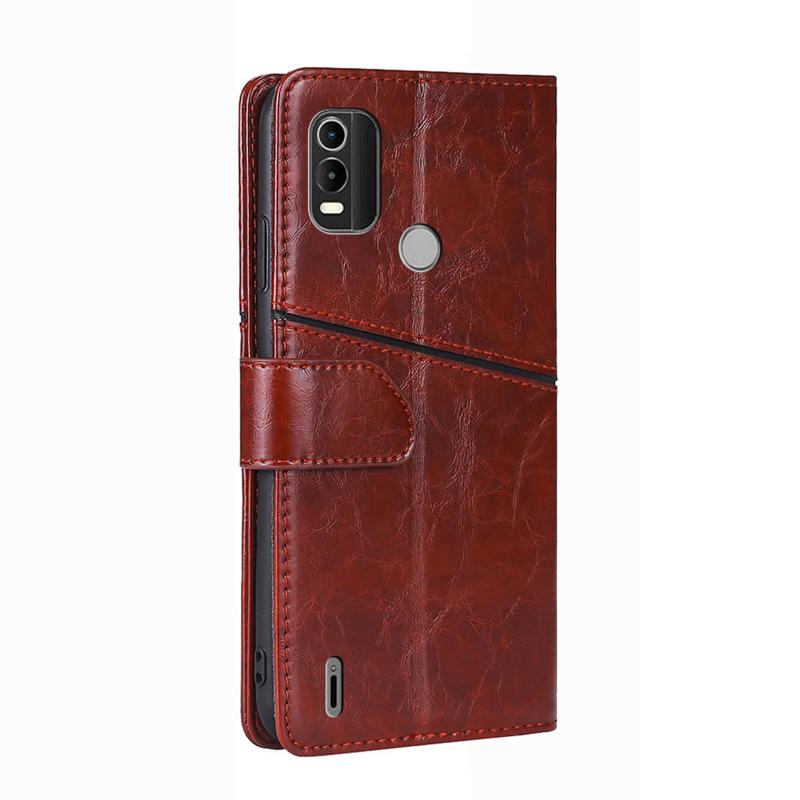 For Nokia C21 Plus Geometric Stitching Horizontal Flip Leather Phone Case(Dark Brown)