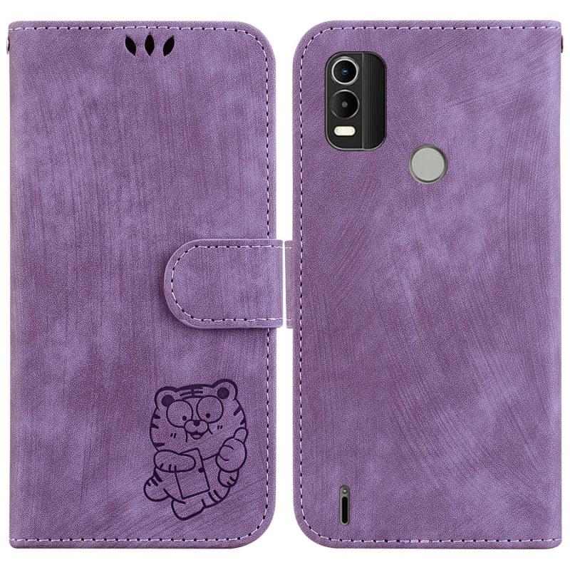 For Nokia C21 Plus Little Tiger Embossed Leather Phone Case(Purple)