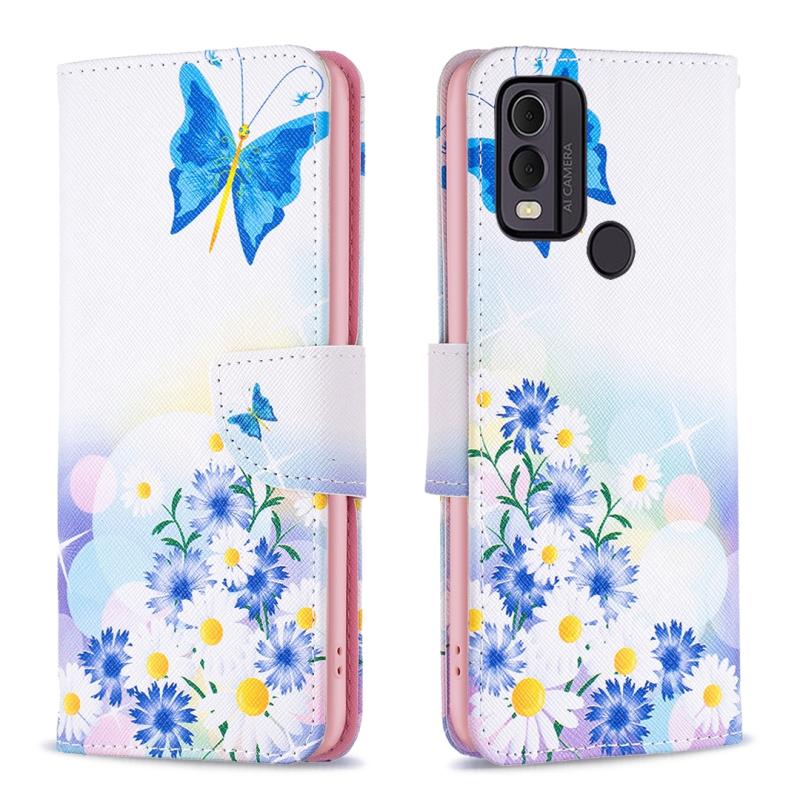 For Nokia C22 Colored Drawing Pattern Leather Phone Case(Butterfly Love)