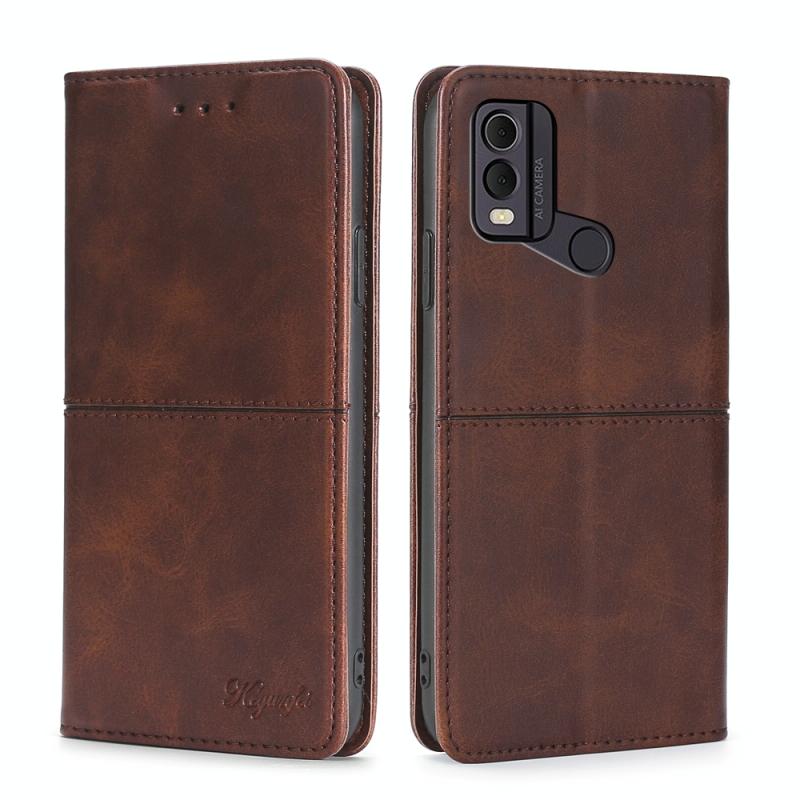 For Nokia C22 Cow Texture Magnetic Leather Phone Case(Dark Brown)