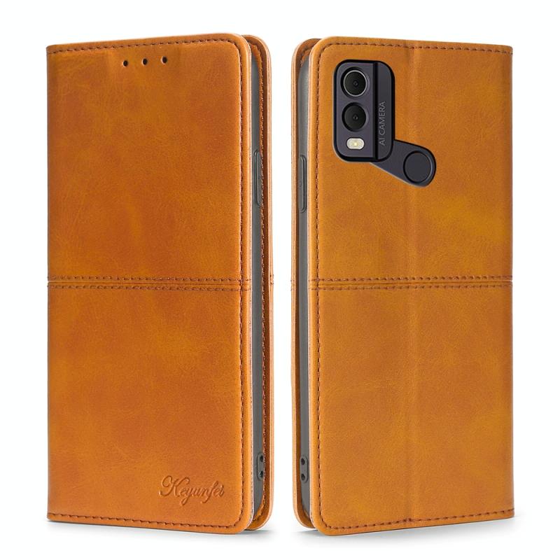 For Nokia C22 Cow Texture Magnetic Leather Phone Case(Light Brown)