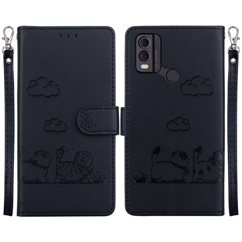 For Nokia C22 Cute Cats RFID Leather Phone Case(Black)