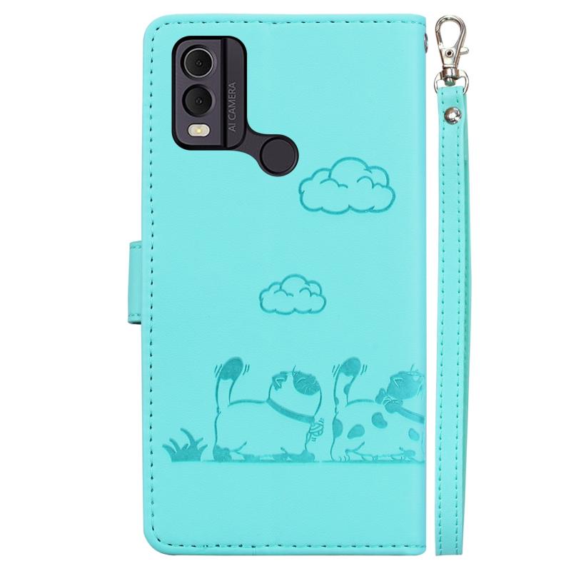 For Nokia C22 Cute Cats RFID Leather Phone Case(Green)