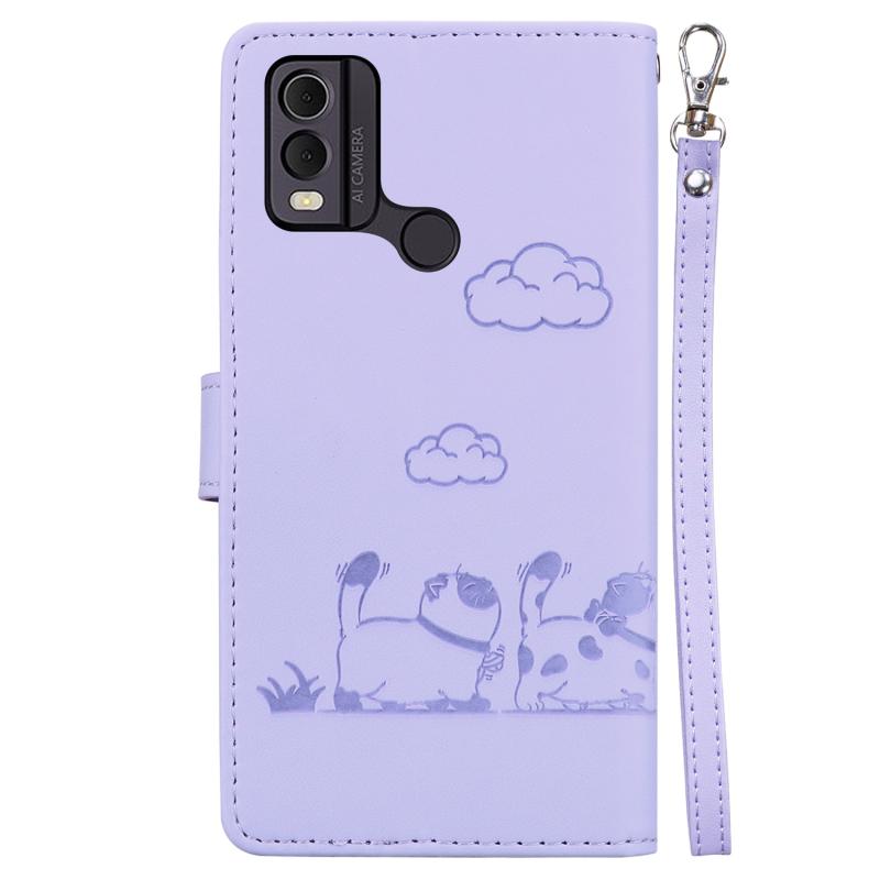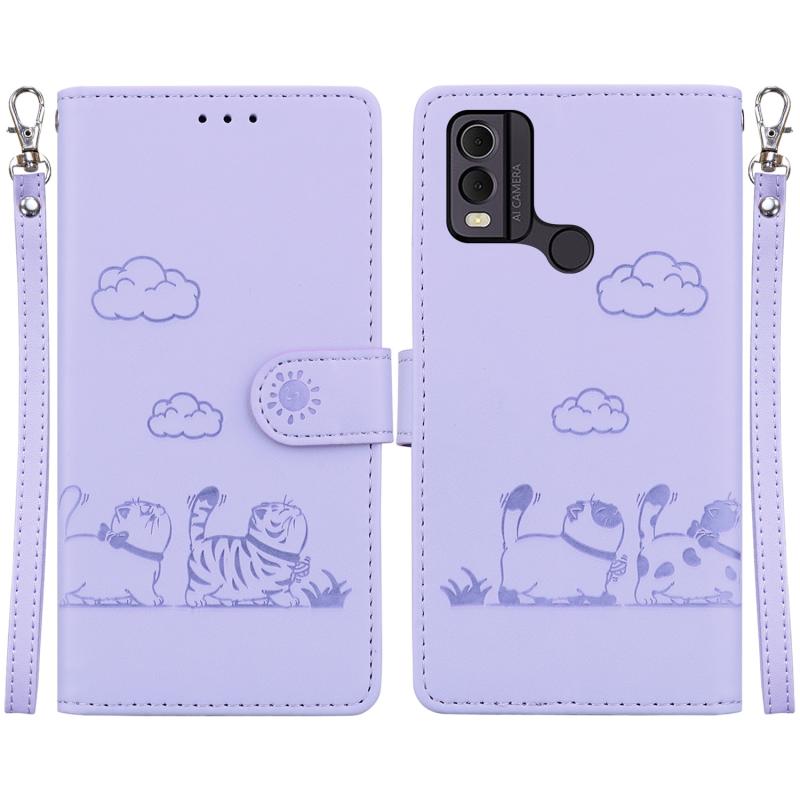 For Nokia C22 Cute Cats RFID Leather Phone Case(Purple)