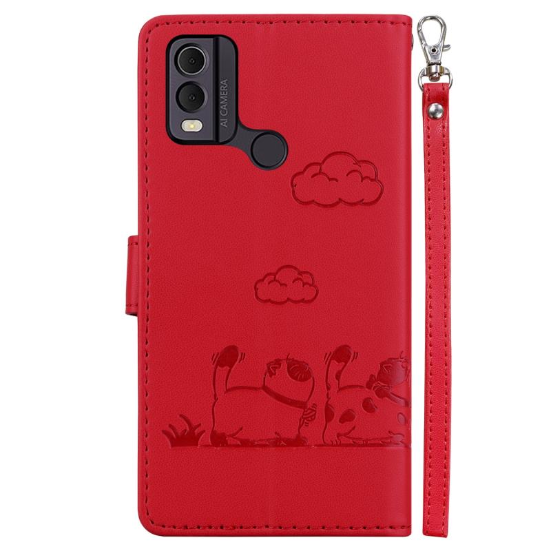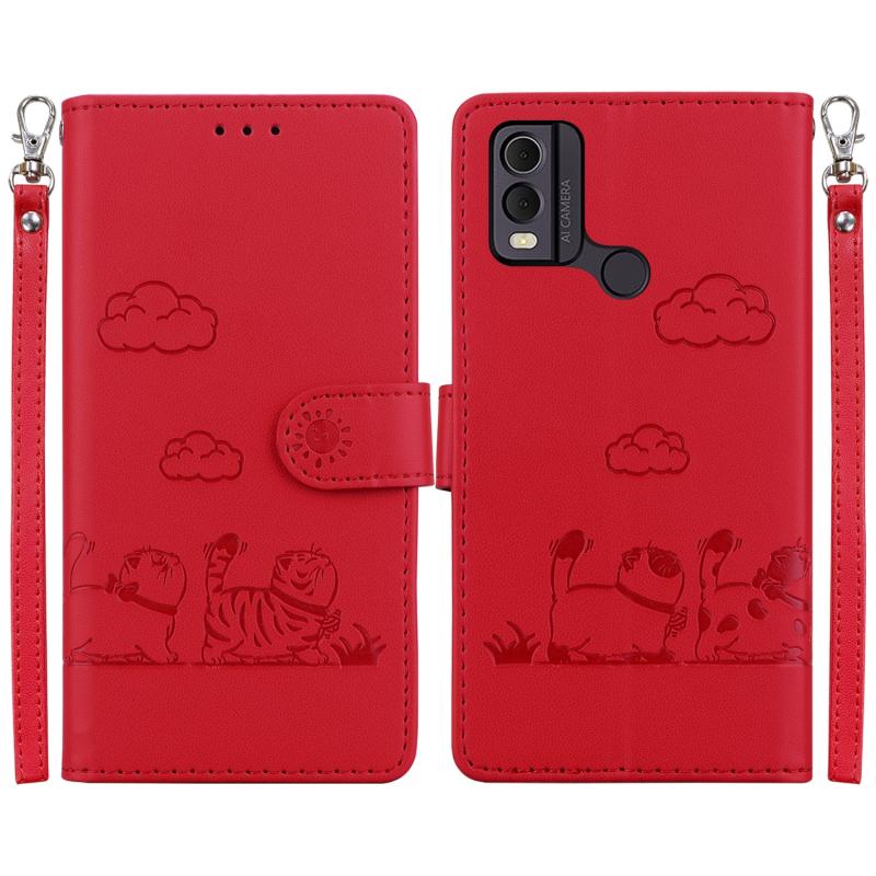 For Nokia C22 Cute Cats RFID Leather Phone Case(Red)