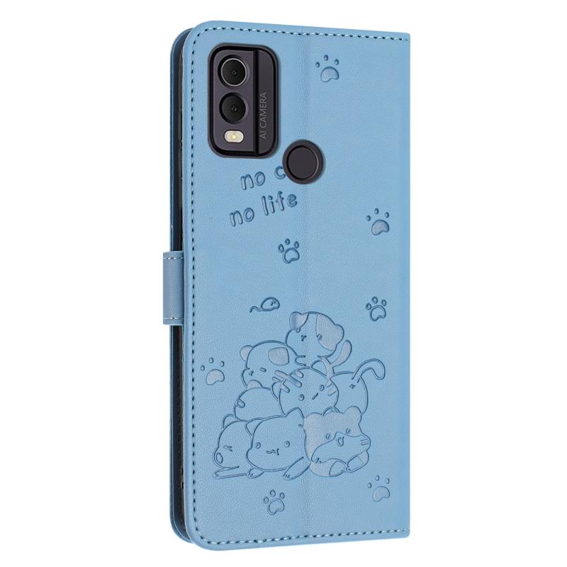 For Nokia C22 Embossed Kitten Phone Leather Case with Lanyard(Blue)