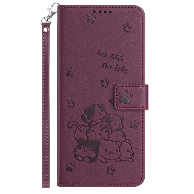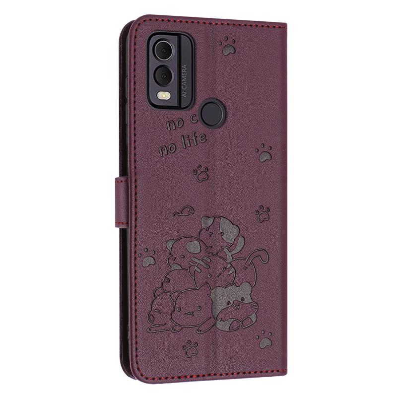 For Nokia C22 Embossed Kitten Phone Leather Case with Lanyard(Wine Red)