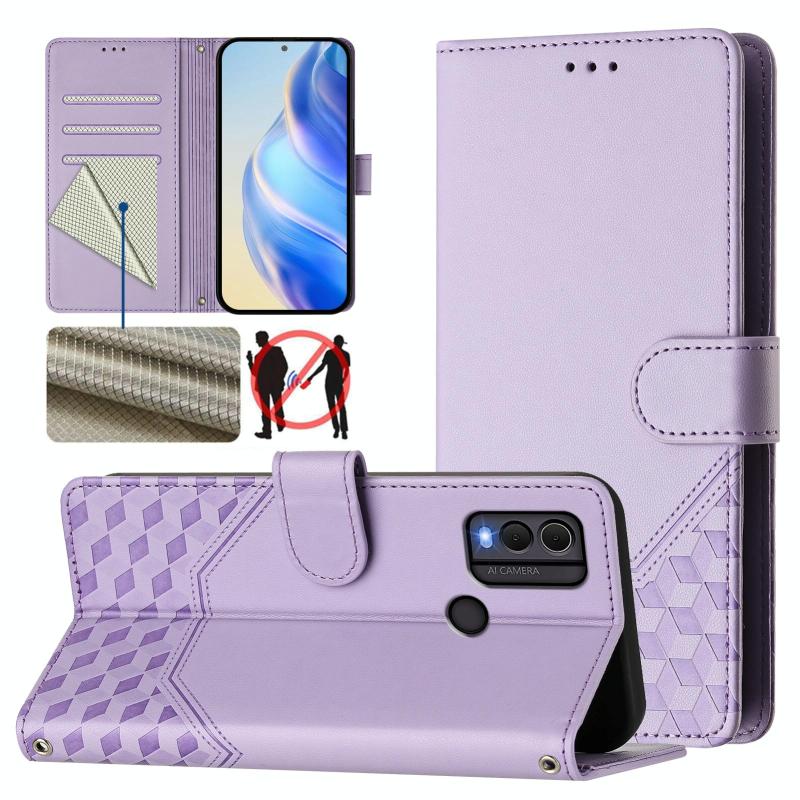 For Nokia C22 Honeycomb Embossing RFID Leather Phone Case(Light Purple)