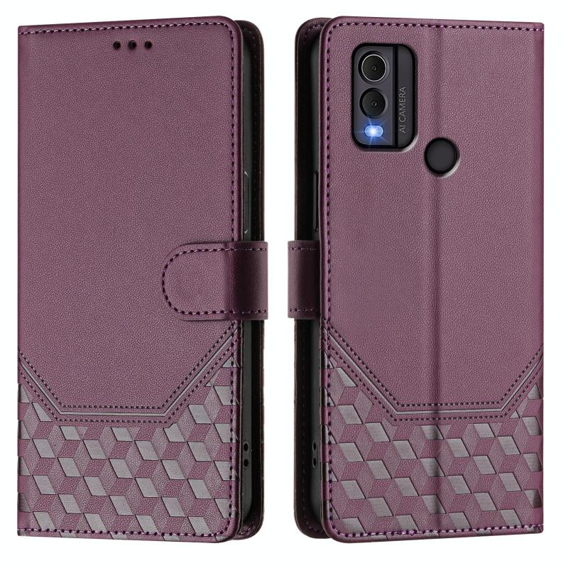 For Nokia C22 Honeycomb Embossing RFID Leather Phone Case(Violet)