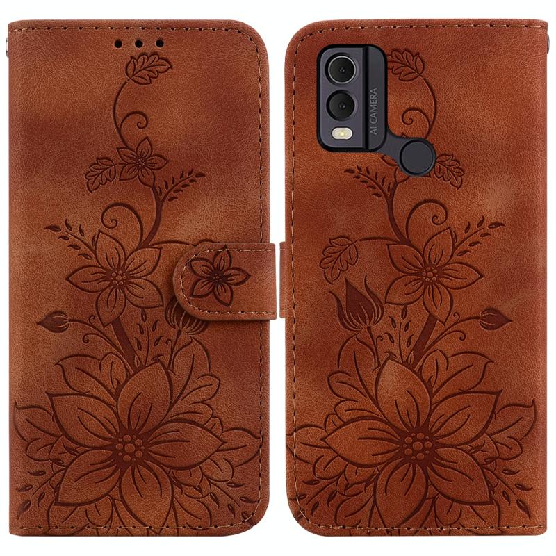 For Nokia C22 Lily Embossed Leather Phone Case(Brown)