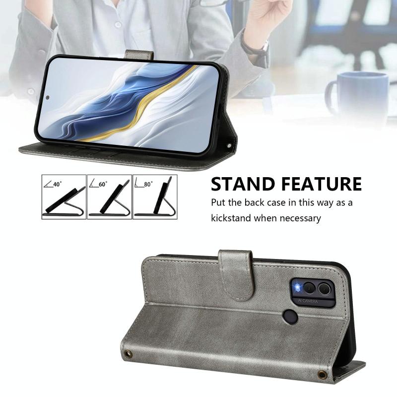 For Nokia C22 Line Splicing Buckle Retro Leather Phone Case(Grey)