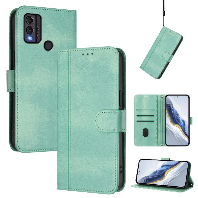 For Nokia C22 Line Splicing Buckle Retro Leather Phone Case(Mint Green)