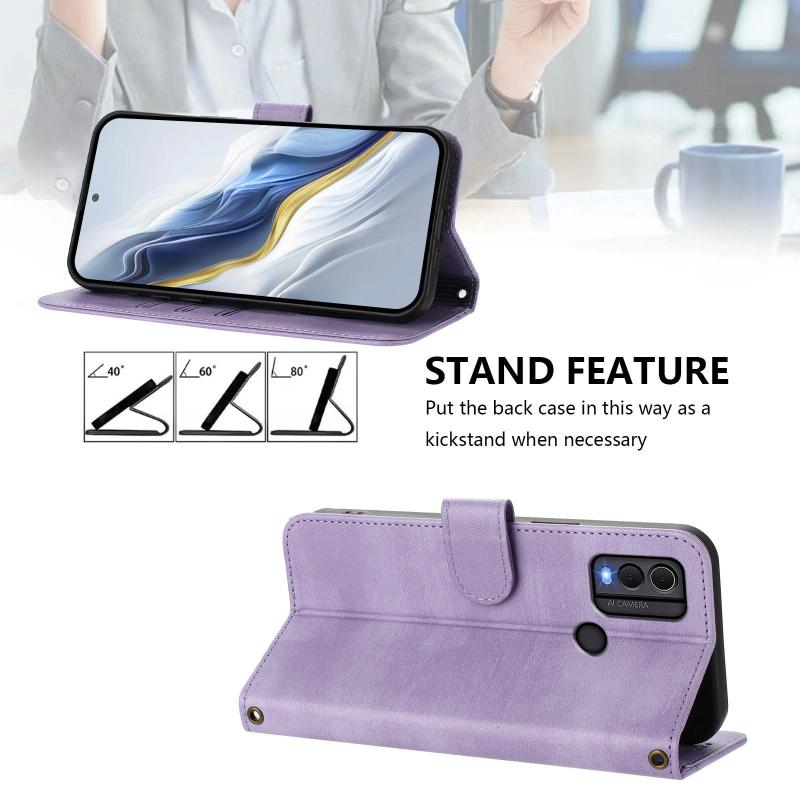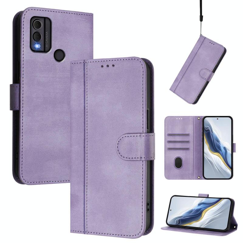 For Nokia C22 Line Splicing Buckle Retro Leather Phone Case(Purple)