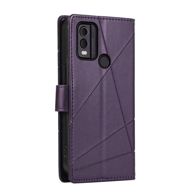 For Nokia C22 PU Genuine Leather Texture Embossed Line Phone Case(Purple)