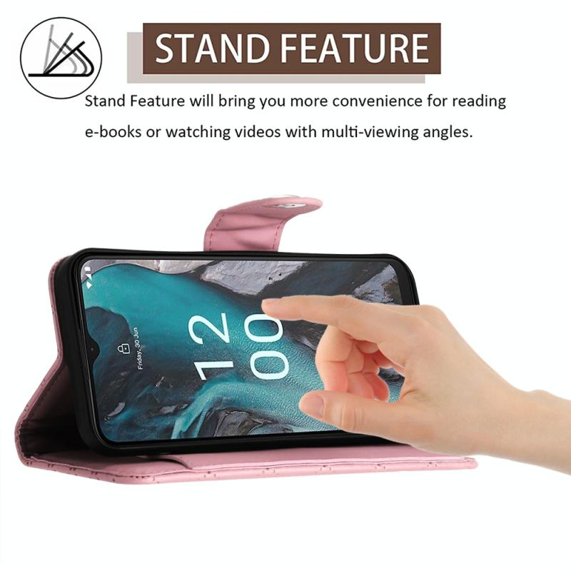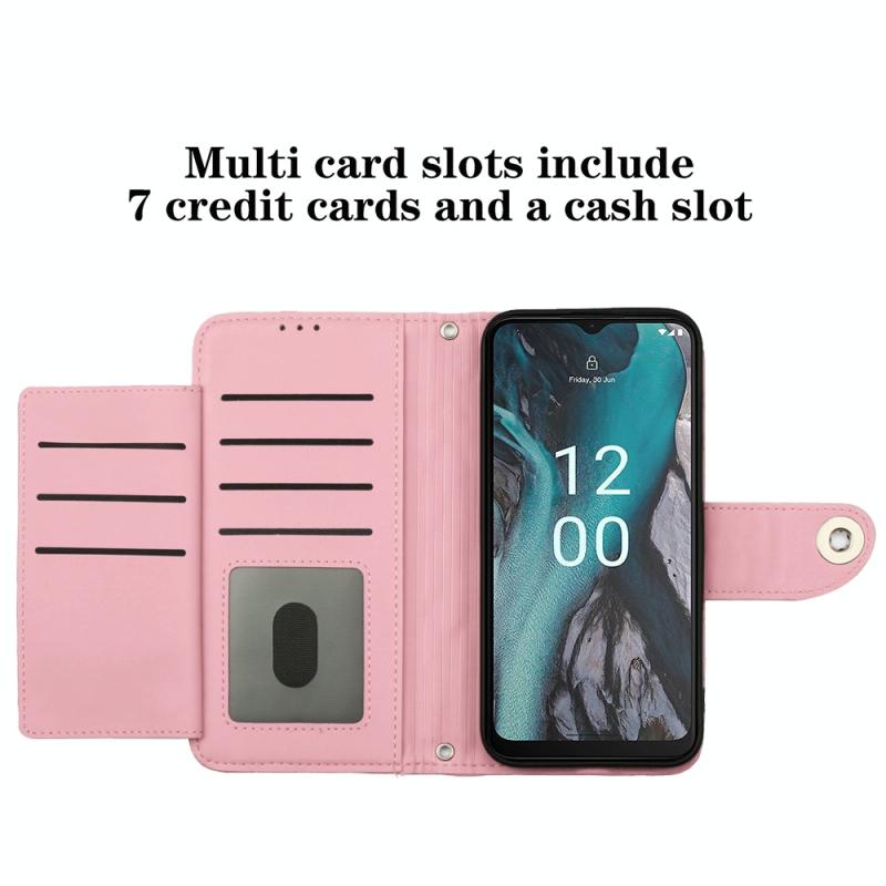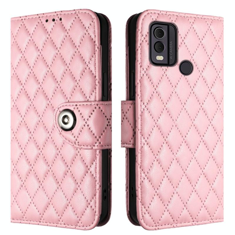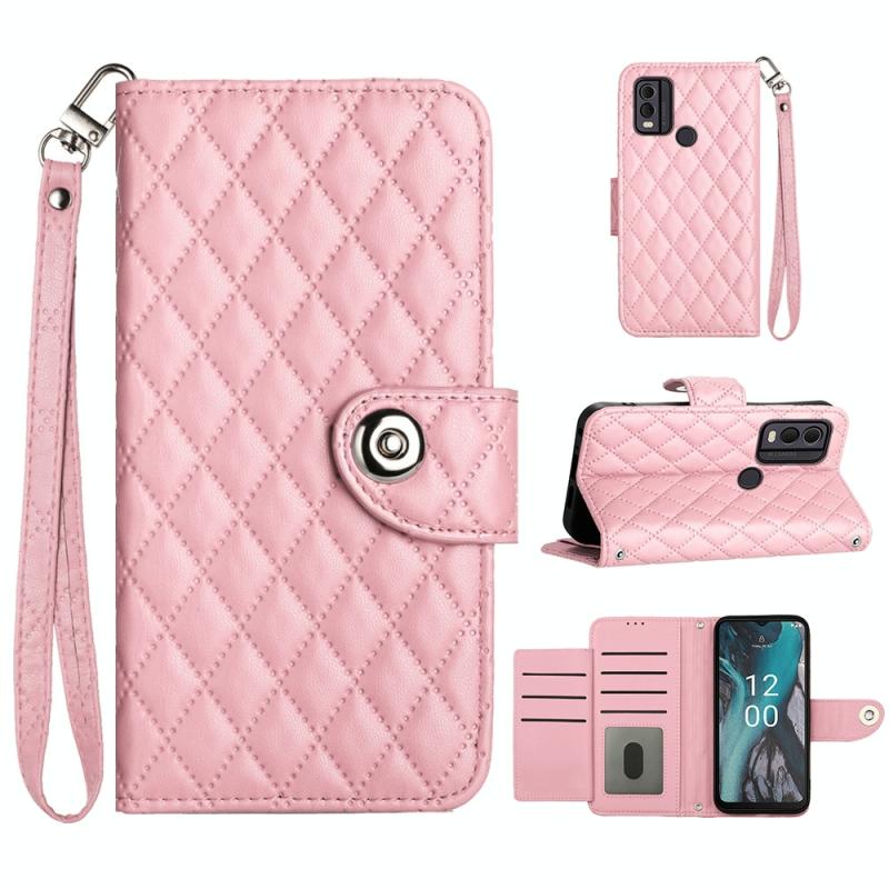For Nokia C22 Rhombic Texture Flip Leather Phone Case with Lanyard(Pink)